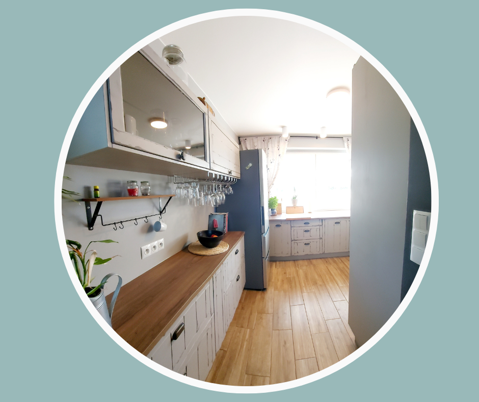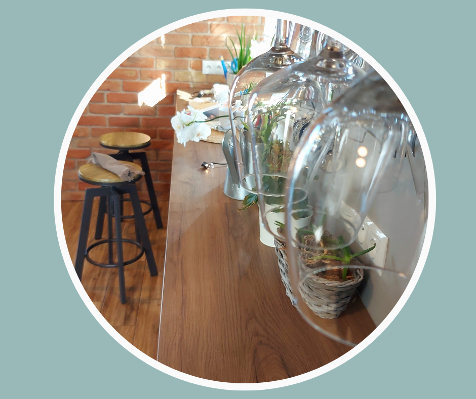 Meble kuchenne są drewniane, wykonane na wymiar. Dom sprzedawany jest wraz z meblami i sprzętami kuchennymi tj. mikrofalówka, piekarnik, okap, duża lodówka (szerokość 70cm), zmywarka, 5 palnikowa płyta grzewcza, przystosowana do woka. Szafki pomieszczą wszystkie potrzebne naczynia, garnki, jak i produkty spożywcze. Atutem są duże, szerokie blaty, piękny widok z okna i przemyślany układ szuflad i szafek. Blaty dopasowane są kolorystycznie do podłóg, co tworzy bardzo ładne połączenie. Przedłużeniem kuchni jest bar wyposażony w hokery. Można poczuć się jak w ulubionej kawiarni. Ściana z odzyskanej cegły, blaty i wspaniała kawa z ekspresu jest dopełnieniem przytulnego uroku domu. Zapraszam na kawę, porozmawiajmy o Twoim nowym domu!